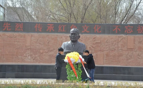 师生们在高金城烈士墓碑前,举行了悼念仪式,员工代表敬献了花篮,全体人员奏唱国歌,重温了入党誓词。