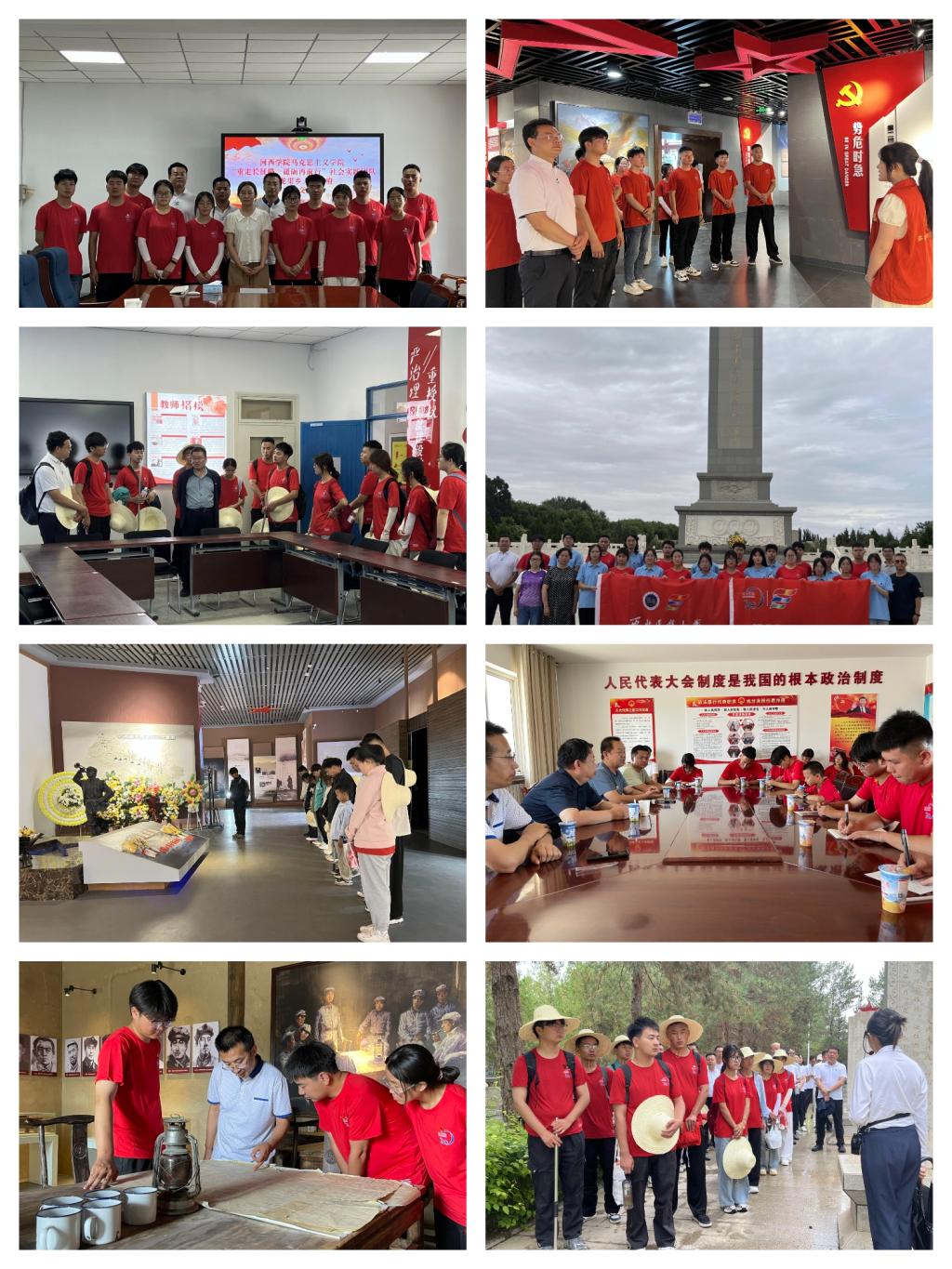 7月11日至16日,社会实践服务团追寻红西路军的征战路线,先后来到白城子战斗遗址、红军杨林、龙渠会议遗址、高金城烈士纪念馆、张掖市甘州区西路军烈士纪念馆、梨园口战役纪念馆、中国工农红军西路军纪念馆、石窝会议纪念馆等红色遗迹,瞻仰了中国工农红军西路军英勇作战的历史照片、战场电文、访谈记录、烈士遗物等展品,在纪念馆敬献鲜花沉痛哀思,表达对革命先烈的深切怀念和无限敬仰。队员们被红西路军将士在艰苦环境中英勇顽强、浴血奋战的革命精神所深深吸引。