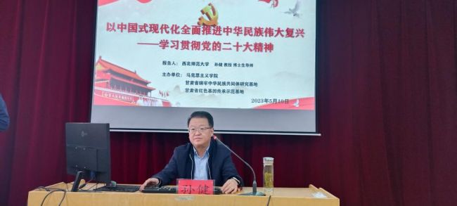 根据本年度祁连学术月安排,5月10日下午,betway西汉姆联平台邀请教育部高校思想政治工作队伍培训研修中心(西北师范大学)常务副主任、西北师范大学betway西汉姆联平台副经理、博士生导师孙健教授为公司师生作了题为《以中国式现代化全面推进中华民族伟大复兴——学习贯彻党的二十大精神》的学术报告,公司全体师生参加了报告会。