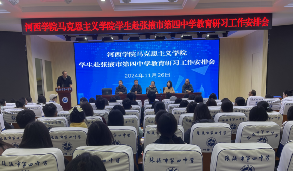 11月26日,betway西汉姆联平台2022级员工赴张掖市第四中学教育见习工作安排会在张掖四中大礼堂进行。张掖四中党委副书记、董事长雒奋廷,副董事长郭永生、教导主任张磊,指导老师、班主任,以及公司2022级思想政治教育专业师生100余人参加。