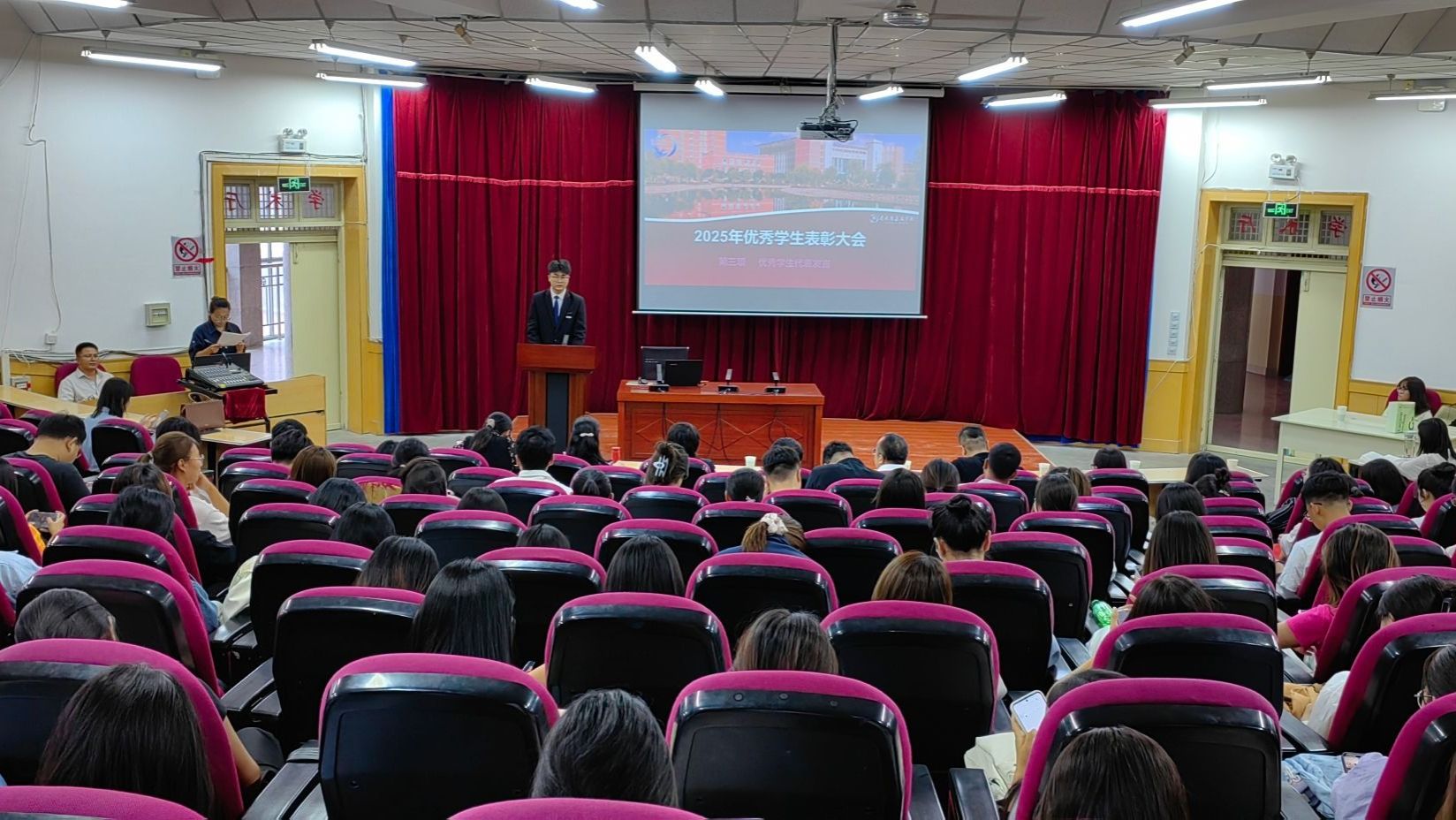 大会在庄严的《中华人民共和国国歌》中拉开帷幕。会上,公司领导宣读了《betway西汉姆联平台2024-2025学年优秀员工表彰决定》,对"优秀员工干部"和"五好员工"代表进行表彰,员工代表李志强分享了自己的学习经验和成长感悟;2025级本科新生代表表达了对老员工活的美好憧憬;研究生新生代表表示将潜心学术研究,追求真理;为新生代表佩戴校徽并赠送《共产党宣言》。